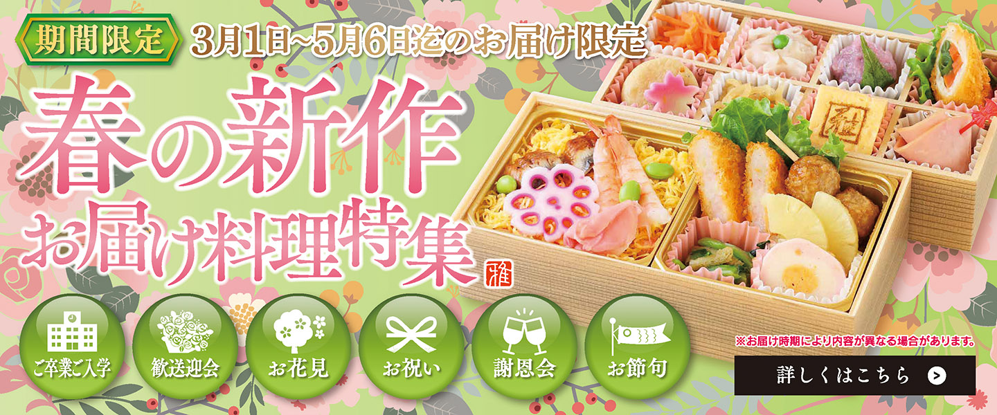 いつもご利用頂きありがとうございます。冬限定のお弁当とお正月明けのお届け料理特集を公開致しました。今年も大変多くのお客様に御利用頂き本当にありがとうございました。2026年も更に美…続きはこちら